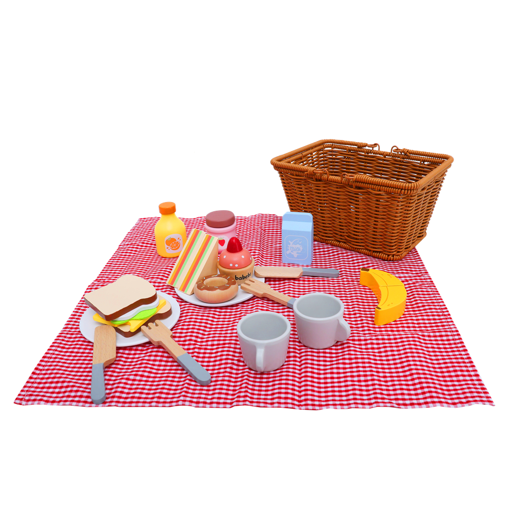 Estenda a toalha e prepare-se para o lanche mais divertido do dia! O conjunto Brincando de Piquenique da Babebi é um convite irresistível para as crianças a partir de 18 meses explorarem o mundo do faz de conta. Com peças em madeira que reproduzem itens reais de um café da manhã ou lanche no parque, este kit transforma qualquer tapete da sala em um cenário de histórias, partilha e muito carinho.