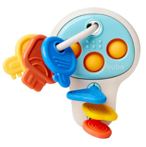 A Chave de Atividades – Buba é um brinquedo interativo pensado para estimular a coordenação motora e os sentidos dos bebês.