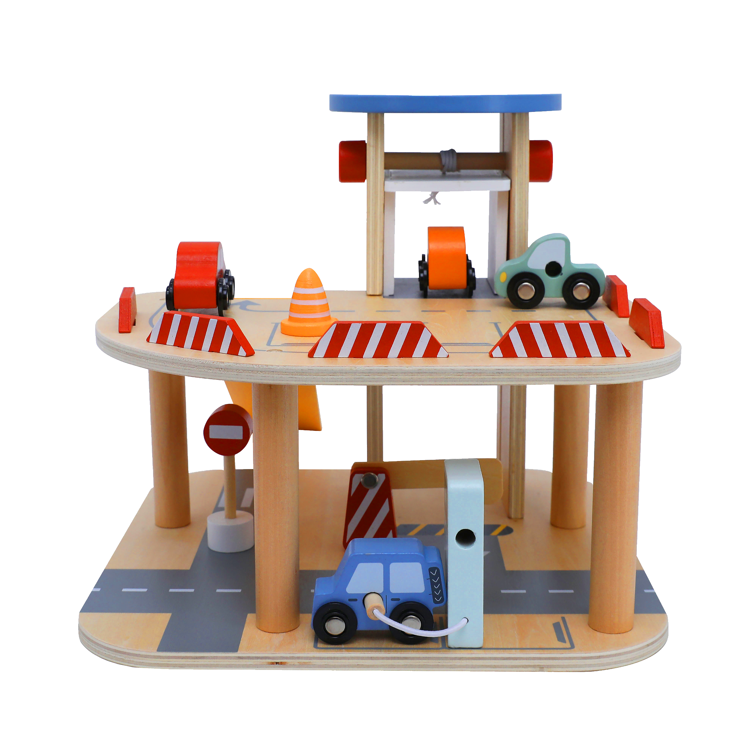 - Conteúdo da Embalagem: 1 Estacionamento com elevador, guard-rails e rampa, 4 Carrinhos coloridos com rodinhas, 1 Cancela móvel, 1 Bomba de combustível/recarga, 1 Placa de sinalização (PARE) e 1 Cone.