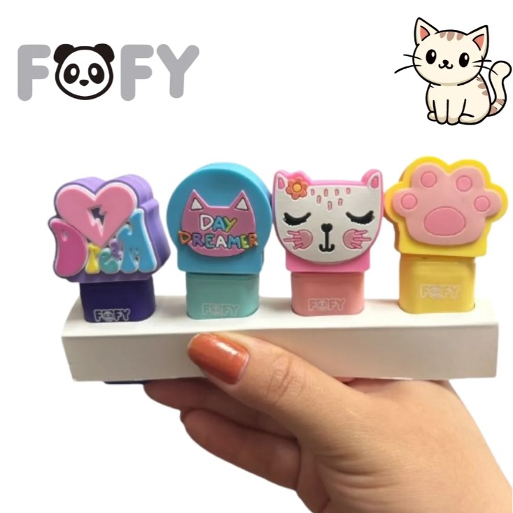 O Marca Texto My Cat 4 Cores (FF1006) da Fofy é um conjunto fofo e funcional,ideal para estudos e trabalho.Com design de gatinhos, inclui quatro cores vibrantes (geralmente rosa, azul, amarelo e lilás) com ponta chanfrada, medindo aproximadamente 10 cm cada, sendo portátil e macio ao toque.