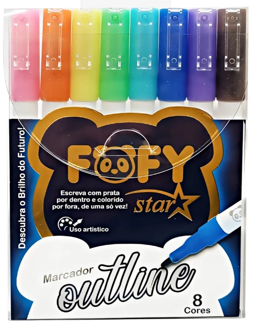 Descubra o Marcador Outline 8 Cores FF2000 da Fofy, uma ferramenta artística indispensável para quem busca dar vida e cor a seus projetos criativos.