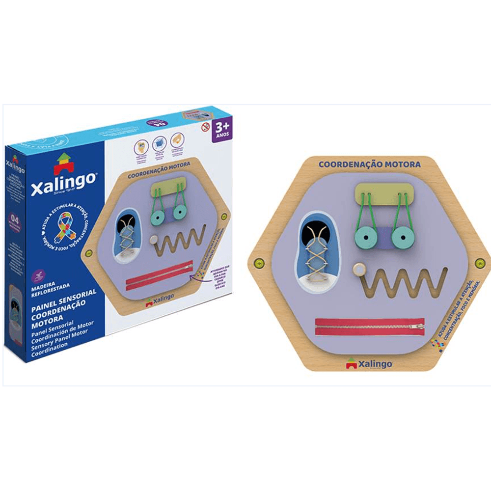 O Painel Sensorial Coordenação Motora Xalingo é um brinquedo educativo projetado para estimular o desenvolvimento da coordenação motora fina e grossa das crianças.