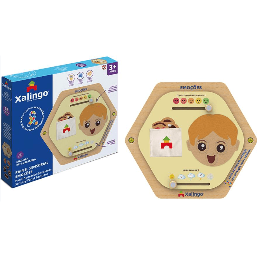 O Painel Sensorial Emoções Xalingo é um brinquedo educativo projetado para auxiliar as crianças no reconhecimento e expressão das emoções de forma lúdica.