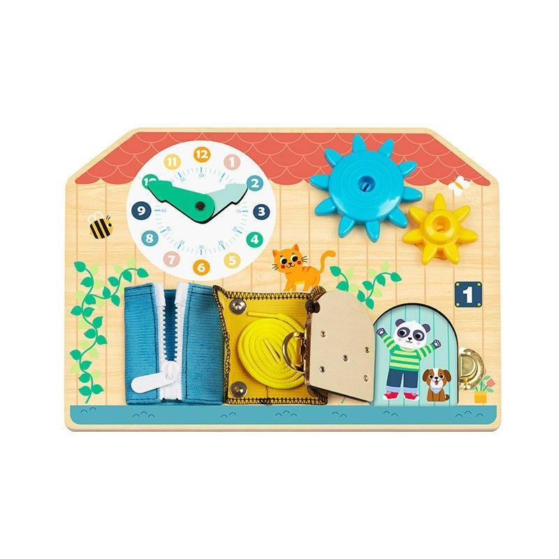 O Quadro de Atividades é um brinquedo educativo completo que convida a criança a explorar, experimentar e aprender por meio do brincar ativo. Inspirado nos princípios da pedagogia Montessori, ele reúne diferentes desafios do dia a dia — como encaixes, botões, zíperes e alavancas — que estimulam a curiosidade natural e o desenvolvimento de habilidades essenciais desde a primeira infância.