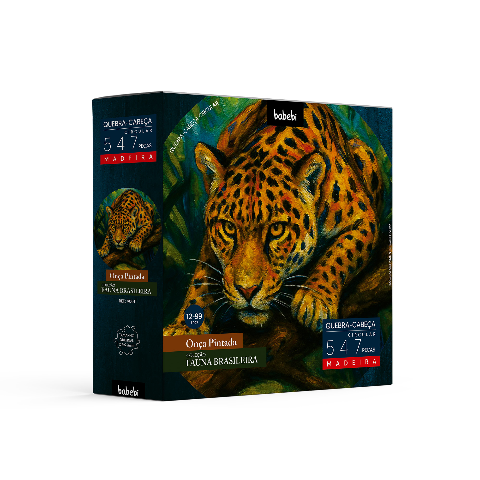 Mergulhe na força da natureza com um desafio fora do comum. O quebra-cabeça Circular Onça-Pintada da linha Babebi Kidults é uma celebração ao maior felino das Américas e à biodiversidade brasileira. Com uma ilustração impactante e o formato circular de 43 cm de diâmetro, este conjunto de 547 peças em madeira oferece uma experiência de montagem envolvente, fluida e extremamente sofisticada.