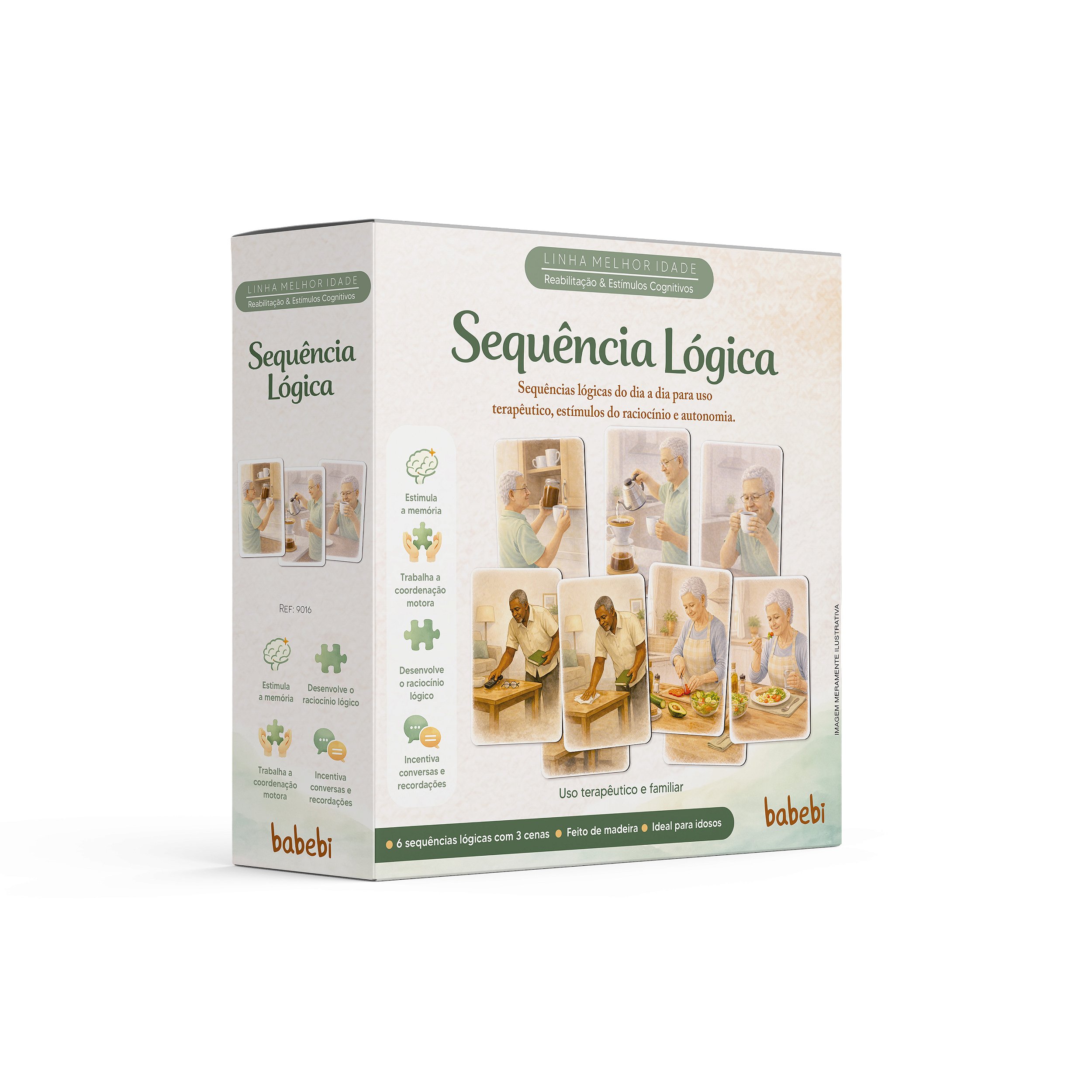 A Babebi Melhor Idade nasceu do cuidado em olhar para o envelhecimento com respeito, sensibilidade e propósito. Foi desenvolvida para estimular as funções cognitivas, sensoriais e funcionais de idosos, considerando a história de cada pessoa, seu tempo e, principalmente, sua autonomia. É indicada para pessoas em processos de: manutenção das funções executivas, declínio cognitivo associado ao envelhecimento, reabilitação pós-AVC, demência leve, Alzheimer em fase inicial, além do estímulo sensorial e emocional. Aqui, o foco não é brincar como uma criança. É reconectar com o que faz sentido. Reconhecer objetos familiares. Relembrar rotinas do dia a dia. Exercitar escolhas. Sentir-se capaz. Participar. Ter prazer em realizar uma atividade. Cada encaixe, cada sequência, cada associação foi pensada como um convite silencioso — daqueles que acolhem sem pressionar — e que dizem, com delicadeza: “Você consegue. Você ainda está aqui. Sua mente ainda aprende.”